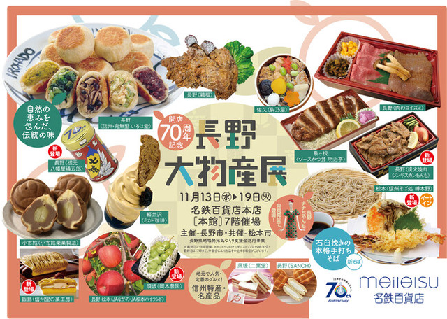 「名鉄百貨店開店70周年記念 長野大物産展」開催に先立ち、長野市長である荻原 健司氏も参加するオープニングセレモニーを開催。当日は、ナナちゃんの衣装をデザインした「岡学園トータルデザインアカデミー」の学生たちによる衣装着想のインタビューなども予定しています。