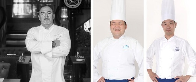 子供たちに料理を教えるのは、日本にナポリピッツアを伝え、世界一のピッツア職人のシェフ(写真左)と、エフ・エム・アイ コーポレートシェフたち(写真右)。