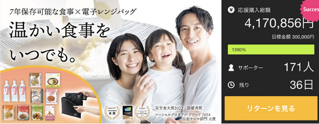 外出先で20~30分で美味しいと思う温度で食事を食べられ、キャンプや車中泊での活用など日常生活でも大活躍します。この便利さをぜひ体験してください。そして何より「備えない防災」として、日頃から使っていただきたいと考えています。