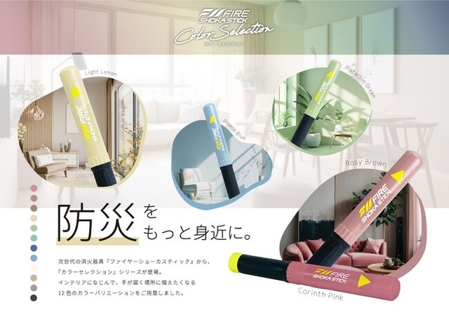 輸入車・自動車用品販売の株式会社ホワイトハウス(本社:愛知県名古屋市、代表取締役社長:木村 文夫)の子会社、株式会社TCLが販売する次世代型消火器具「FIRE SHOKA STICK」(ファイヤーショーカスティック)より、インテリアになじんで手が届く場所に備えたくなる12色のバリエーション「カラーセレクション」シリーズが登場しました。2024年11月25日より、公式通販サイトにて販売を開始致します。