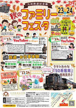 JR九州では、九州鉄道記念館(最寄駅:門司港駅)を会場に11月23日(土)・24日(日)の2日間、