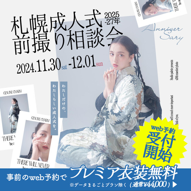 北海道札幌市にある写真工房ぱれっと(本社/有限会社三景スタジオ)にて、「札幌成人式前撮り相談会」の実施が決定いたしました。