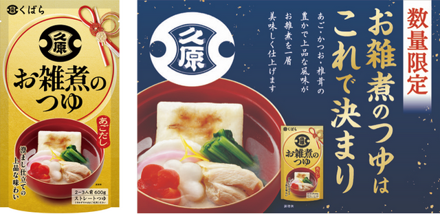 久原本家グループ(福岡県糟屋郡久山町、社主:河邉哲司)は、あご(トビウオ)のだしの旨みを生かした調味料を販売する株式会社久原醤油から、2024年11月より、お正月の食卓を豊かに彩る「お雑煮のつゆ」を販売しました。日本の新年に欠かせないお雑煮作りにおいて、より手軽に本格的な味を楽しめる商品として、新たな提案をお届けします。