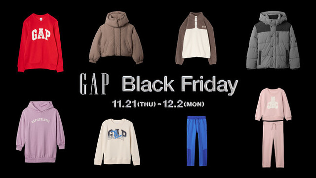 Gapは、2024年11月21日(木)から12月2日(月)の期間中、全国のGapストアとGap公式オンラインストア( https://www.gap.co.jp/ )で対象商品(セール品、一部対象外商品あり)が40%OFF、アウトレットストアでは50%OFFになるブラックフライデーイベントを開催します。GAPメンバーシップの新規会員になればさらに5%OFFとなります。