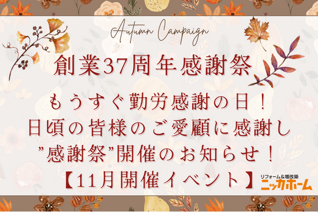 11月はリフォーム相談会やイベントの開催などビッグイベントが目白押しです!