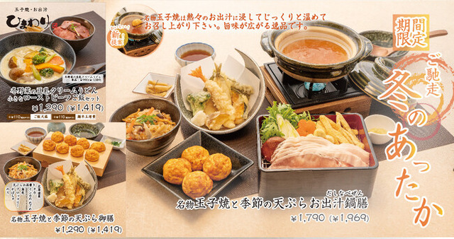 この度、玉子焼・お出汁ひまわりで 「冬のあったかメニューフェア」 を2024年11月13日(水)より開催します。今年は、ひまわり特製お出汁を使用したあったかい「お出汁鍋膳」を新発売!熱々の特製お出汁に入れてお出汁をしっかりと吸い込ませた名物玉子焼を、お出汁と一緒にお召し上がりください。特製お出汁と豆乳をかけ合わせて季節の野菜がたっぷり入った「豆乳クリームうどん」、名物玉子焼と季節の天ぷらと季節の炊き込みご飯が付いたセットは今だけ!ぜひこの機会にお楽しみください。