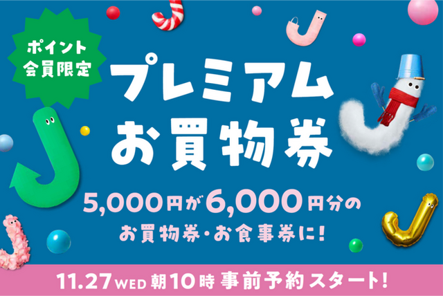 なお、プレミアムお買物券のご購入は、事前予約が必要となります。11月27日(水)10:00開始の「事前予約」でご購入日時をご指定の上、ジョイナスへお越しください。