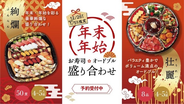 12月30日(月)~1月3日(金)は、お好み注文(お寿司単品の注文)は承りかねます。