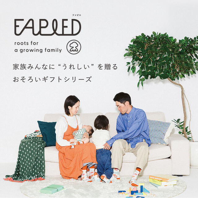 FAPIEDは、大人と子どもが一緒に身につけられる靴下とベビーアイテムを展開する、おそろいギフトのブランドです。FAPIEDはフランス語で家族を意味する"familiar"と、人の足や歩み、木の根や苗木を意味する"pied"という2つの言葉をかけ合わせた造語で、「家族のしあわせな歩みを願う木」という意味が込められています。