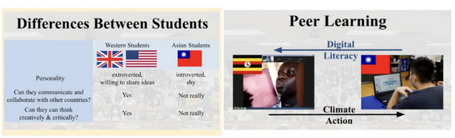 「4.質の高い教育をみんなに」をテーマに、自国の現状把握を他の国との比較を用いて行い、国内での取り組みに加え、海外の学校との協働学習を提案。
