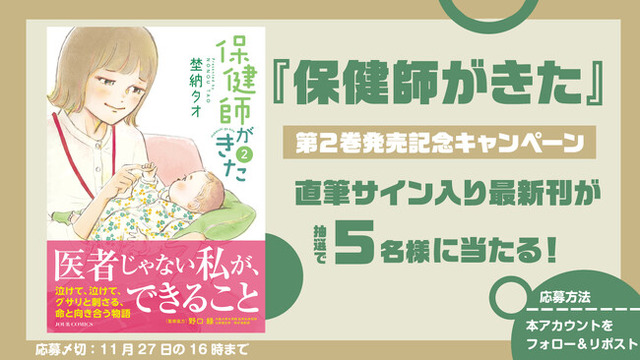 【Library of the year 2021】でライブラリアンシップ賞を受賞した注目の作者、埜納タオの最新お仕事漫画『保健師がきた』第2巻が11月14日(木)に発売されます。