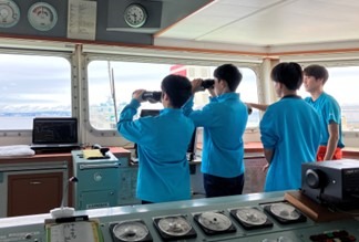 生徒3名に対し職業体験として、当社が運航する船舶「さんふらわあ ごーるど・ぱーる」の船内で当社乗組員の指導のもと、操舵室・機関室等の見学および旅客サービスの営業準備を行い、また神戸港ターミナルで当社スタッフの指導のもと、ターミナル・ヤードの見学および旅客・物流向けの窓口書類の準備等を行いました。