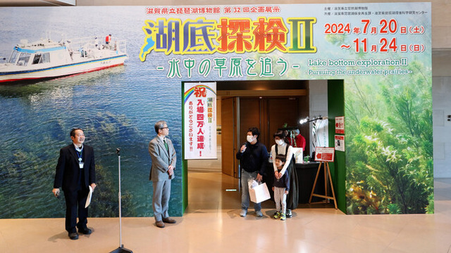 現在琵琶湖博物館で開催中の第32回企画展示「湖底探検II ―水中の草原を追う―」の来館者が4万人を突破いたしました。今回の企画展示は、日本有数の水草の宝庫である琵琶湖の水草の分布や研究成果の紹介、水草の刈り取りや私たちの生活との関わり等を学ぶことができます。