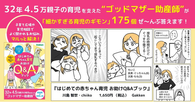 日々疑問と戸惑いのなかで奮闘するパパとママに向けて、32年間、45,000組以上の親子を支えた「ゴッドマザー助産師」川島智世と、Instagram育児マンガで人気の「ぐっちゃんママ」ことchiikoがタッグを組みました! 細かいけど気になってしまう「赤ちゃん育児のギモン」175個を、ひとつひとつ丁寧に解説します。