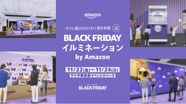 Amazonは、11月29日(金)0時から12月6日(金)23時59分まで開催するビッグセール「Amazon ブラックフライデー」( https://www.amazon.co.jp/blackfriday )を記念して、「Amazonブラックフライデー」での感謝の気持ちを込めたギフトや自分自身へのご褒美選びのわくわく感を体験できるイベント「BLACK FRIDAY イルミネーション by Amazon」を、11月22日(金)から11月24日(日)までの3日間にわたり、「サナギ新宿」前イベントスペースで開催します。