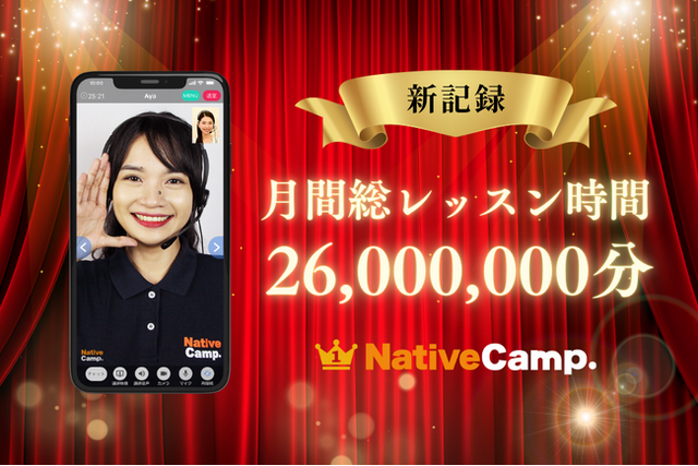 ネイティブスピーカーと回数無制限のオンライン英会話サービス「ネイティブキャンプ英会話」を展開する株式会社ネイティブキャンプ(東京都渋谷区 代表取締役:谷川国洋)はこの度、月間総レッスン時間26,000,000分という新記録を達成したことをお知らせいたします。