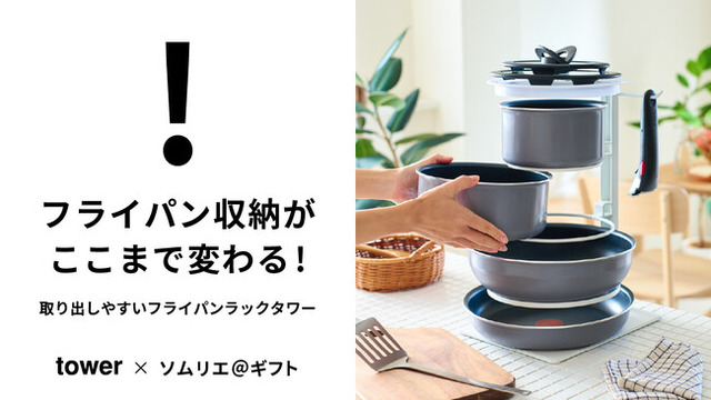 キッチンでのフライパン収納の煩わしさを解決するため、山崎実業 tower×ソムリエ@ギフト限定のオリジナル商品『tower 取り出しやすいフライパンラックタワー』が誕生しました。この便利グッズは、タワー型デザインでフライパンを重ねずに収納でき、横から簡単に取り出せるため、料理中のストレスを軽減します。また、見せる収納としてもスタイリッシュに使えるデザインが特長です。省スペース設計でキッチンをスッキリ保ち、さまざまなサイズのフライパンやキッチン用品にも対応可能。