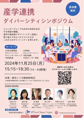 特別非営利活動法人ハッシュタグYourChoiceProject(以下#YourChoiceProject)では、来たる2024年11月25日(月)、15時15分より、産学連携ダイバーシティシンポジウムを開催します。