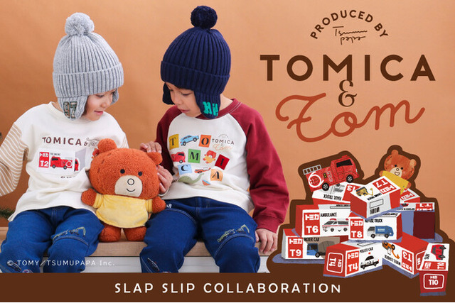 神戸発、子供アパレルの株式会社べべ(本社:兵庫県神戸市、代表取締役社長:卜部 正寿)が展開する「SLAP SLIP(スラップスリップ)」は、人気クリエイターの「つむぱぱ」さんが作る新しいトミカの世界「トミカとトム」のスペシャルコラボレーション第2弾が登場!!☆11月中旬よりSLAP SLIP(スラップスリップ)全国55店舗、BEBE公式オンラインストア(BEBE MALL)にて同時発売。