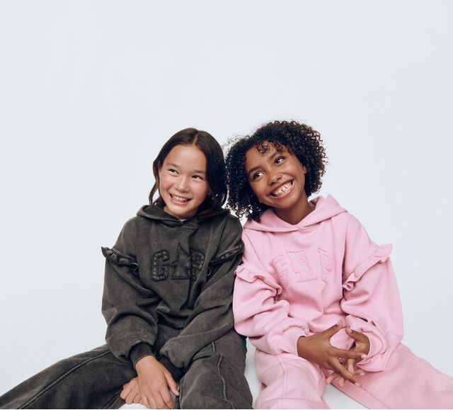 ウィキッドの象徴であるピンク、グリーン、ブラックカラーを基調とし、映画の主人公エルファバとグリンダからインスピレーションを得たコレクションとなっています。ガールズは、ウィメンズとお揃いのヴィンテージソフト ラッフルフリル パーカー、セットアップにもなるヴィンテージソフト バギー スウェットパンツ、GAPロゴとウィキッドの代表曲名がデザインされたヴィンテージソフト スウェットワンピース、グラフィックTシャツ、ビーニー、クルーソックスといった全13種が揃います。ウィメンズは、キッズとお揃いで楽しめるヴィンテージソフト GAPロゴパーカーがピンクとブラックの2色で展開します。