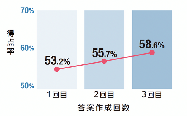 「回を重ねるごとに得点率があがっていき、3回目で80%獲得!」