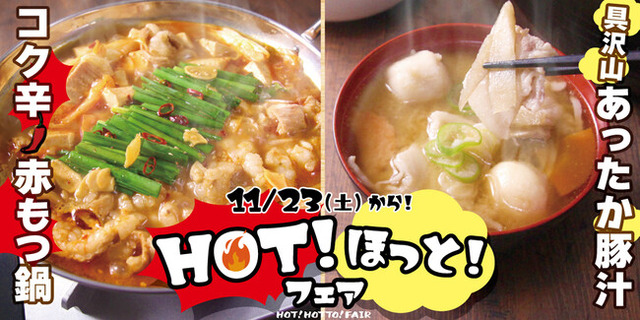 [11/23(土)~登場フェアメニュー]コク辛赤もつ鍋、具沢山あったか豚汁、旨辛ポーク、カヌレ(ディナー限定)