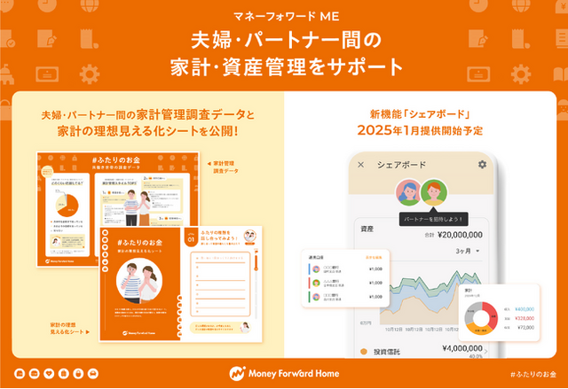 また、『マネーフォワード ME』で2人でお金の管理ができる新機能「シェアボード」を2025年1月下旬から提供開始することをお知らせします。