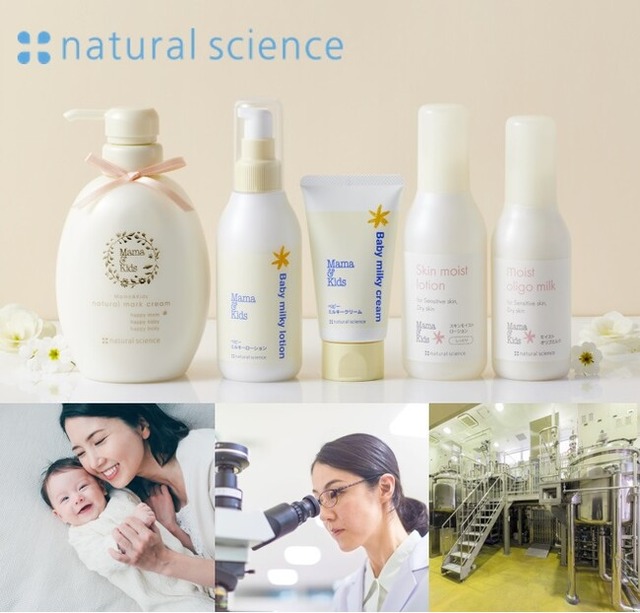 低刺激スキンケアメーカーのナチュラルサイエンスは、30年にわたり世界一デリケートな赤ちゃんの肌を研究し続けてまいりました。そんなデリケートな赤ちゃんから敏感肌の大人まで一緒に使える低刺激のスキンケアを中心に、肌本来の力を引き出すスキンケアやサプリメントなどの研究開発・販売を行っています。特に敏感肌向けブランド「ママ&キッズ」は⽪膚科医・小児科医・産婦人科医・アレルギー専門医の協力のもと開発を行い、低刺激性を実現。またその効果を確かめるため、大学病院や⽪膚科での臨床テストを実施するなど、徹底的に品質をチェックしています。