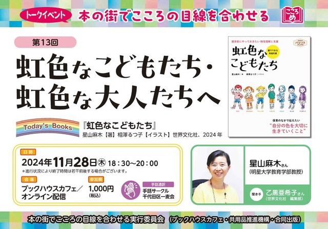 11月28日(木)トークイベント開催 本の街で心の目線を合わせる 第13回「虹色なこどもたち・虹色な大人たちへ」を開催いたします。