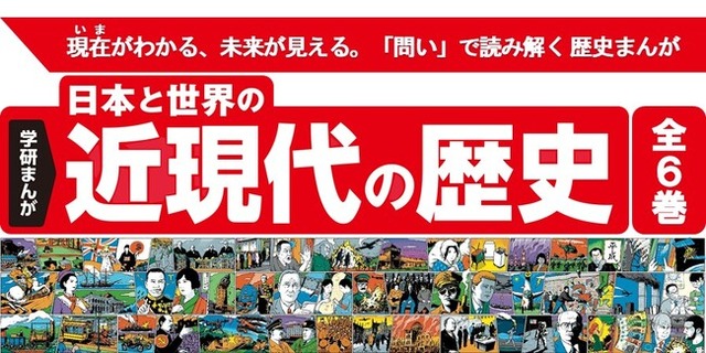 『学研まんが 日本と世界の近現代の歴史』は、小学校高学年~高校生に向けた、近現代史についての歴史学習まんがです。初めて歴史にふれる読者に向けたわかりやすい内容で、難しい用語には脚注で解説がつき、ほかの資料なしで理解し、楽しむことができます。さらに、従来の歴史まんがにはない新しい手法「問い」を盛り込んでいます。