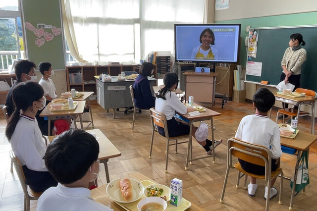 併せて、食材や生産者の声などを紹介するICT教材などを作成し、学校に配付する取組も行っており、子どもたちは給食で地元の食材を味わい、また、動画などで、生産者の思いを知ることができます。