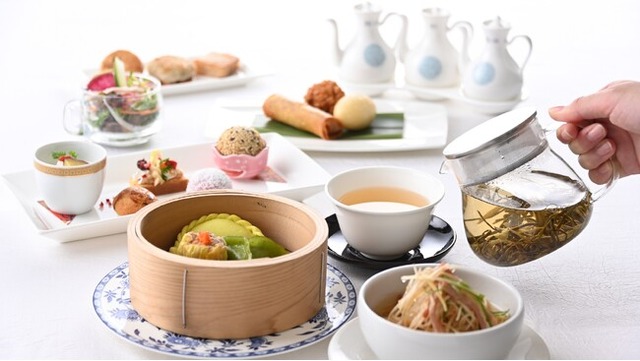 蒸し・揚げ・焼きの調理法で仕上げた9種類の点心を、4種類から選べるおすすめの中国茶とともにお召しあがりいただけます。
