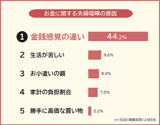 ・お金に関する夫婦喧嘩の原因1位は「金銭感覚の違い」
