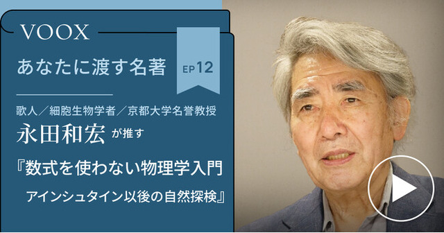第12回では、歌人・細胞生物学者/京都大学名誉教授・永田和宏さんに『数式を使わない物理学入門 アインシュタイン以後の自然探検(角川ソフィア文庫)』(猪木 正文)をご紹介いただきます。