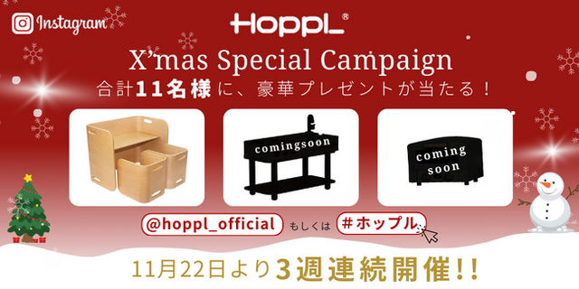 どんなアイテムが賞品になるかは、それぞれのキャンペーンがスタートする日に、公式Instagram(@hoppl_official )のフィード投稿にて、詳細と共に公開されます。