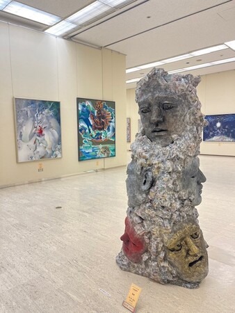 高校生からベテランまでの多彩な平面、立体2部門の入賞入選作202点に加えて、委嘱作家や審査委員の作品を加えた計237点を展示します。最高賞の南日本新聞社賞に輝いた鹿児島市の吉村英彦さんの平面「森羅万象」や、JAL賞を受賞した鹿児島市の徳田景さんの平面「暑中」など力作が並びます。