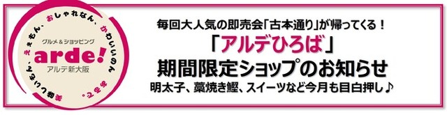 話題性の高いお店がかわるがわる出店するアルデひろばの新ネタを中心に、アルデ新大阪のイベント情報等についてお知らせいたします!