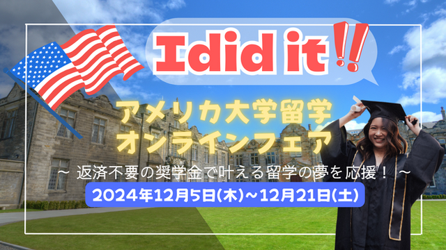 昨今の物価高や円安は、留学費用を増大させる大きな懸念材料です。本フェアでは、アメリカの大学へ進学または編入を目指す学生向けに返済不要の奨学金を利用することで負担を大幅に抑えて留学できる大学情報を含めた最新の留学情報を無料で提供します。