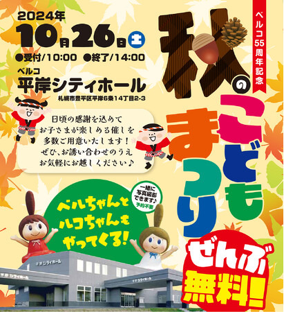 冠婚葬祭互助会の株式会社ベルコ札幌支社では、2024年10月26日(土)、札幌市豊平区にあるベルコ平岸シティホールにて「秋のこどもまつり」を開催いたしました。本イベントは、日頃の感謝をお伝えするとともに、SDGs(持続可能な開発目標)の理念を取り入れた地域貢献活動の一環として実施しました。