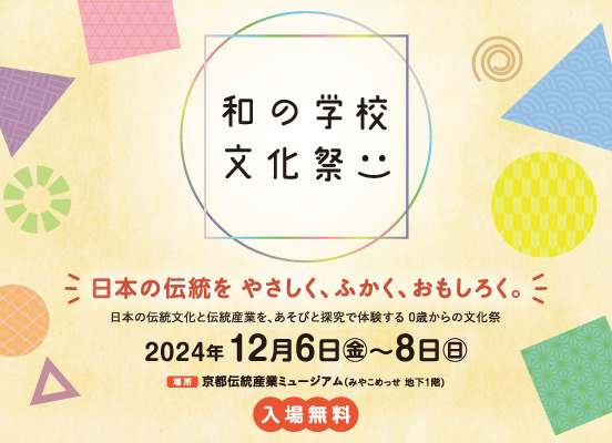京都伝統産業ミュージアム(https://kmtc.jp)にて、2024年12月6日(金)~12月8日(日)の3日間、NPO法人 和の学校(https://wanogakko.jp)主催のイベント「和の学校 文化祭」が開催されます!