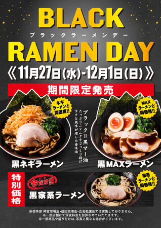 商品概要:ラーメン、ネギラーメン、MAXラーメンの3種のラーメンにブラックフライデーの