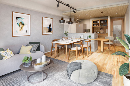 『イニシア池上パークサイドレジデンス』 E1タイプ リビング・ダイニング・キッチン完成予想CG