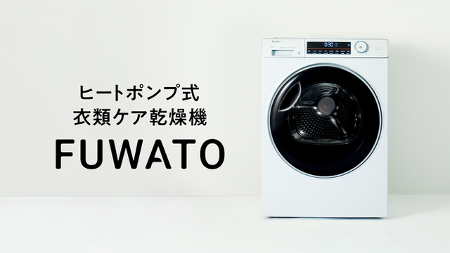 ヒートポンプ式衣類ケア乾燥機(JZ-K90A)「FUWATO」は、同時洗濯・乾燥スタイルに最適な製品です。ハイアール国内初展開の衣類乾燥機である本製品は、業界最大容量※1かつ低温で衣類を乾燥するヒートポンプ式。大量の洗濯物を一度に乾燥できるだけでなく、衣類を傷めず乾燥することが可能です。また、ミストケア機能を使った衣類ケアとしてもご使用いただけ、電源さえあれば排水口が無い場所でも設置が可能です。