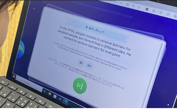 研究授業後には生徒へのインタビューも行われ、生徒たちから「自分の発音を客観的に評価してくれるのでやりやすい」「英語に対する自信がつき、さらにスキルが磨かれるように感じる」といった前向きな感想が寄せられました。