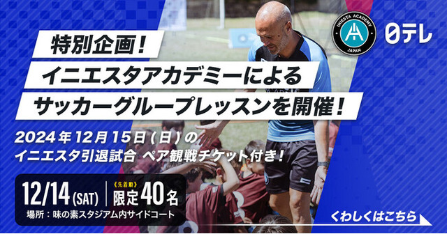 - 当日のサッカークリニックはイニエスタ選手の指導メソッドを引き継いだコーチによる指導であり、イニエスタ選手本人による指導を保証するものではございません。