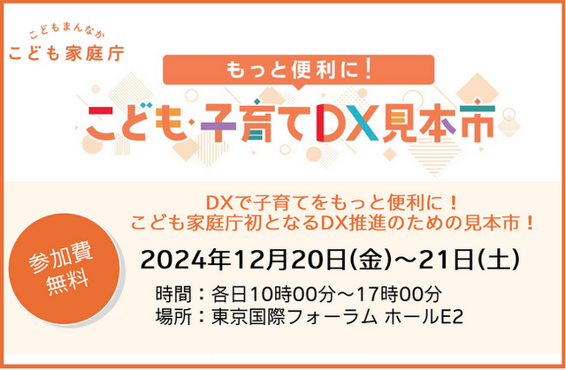 こども家庭庁主催「こども・子育てDX見本市」(12月20日~21日 会場:東京国際フォーラム ホールE2)の事前来場登録とセミナー申込を開始いたしました。