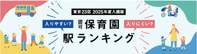 スタイルアクト株式会社(東京都中央区・代表取締役:沖有人)が運営している、分譲マンション購入・売却検討者31万人を有する分譲マンションのセカンドオピニオンサイト「住まいサーフィン」(https://www.sumai-surfin.com/)は、東京23区認可保育園入りにくい駅ランキング(2025年度入園版)を発表します。