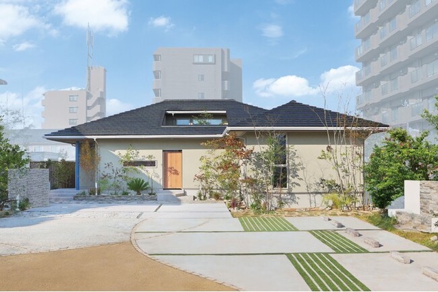 開放的な内観とは対照的に、プライバシーを確保した洗練された外観デザイン
