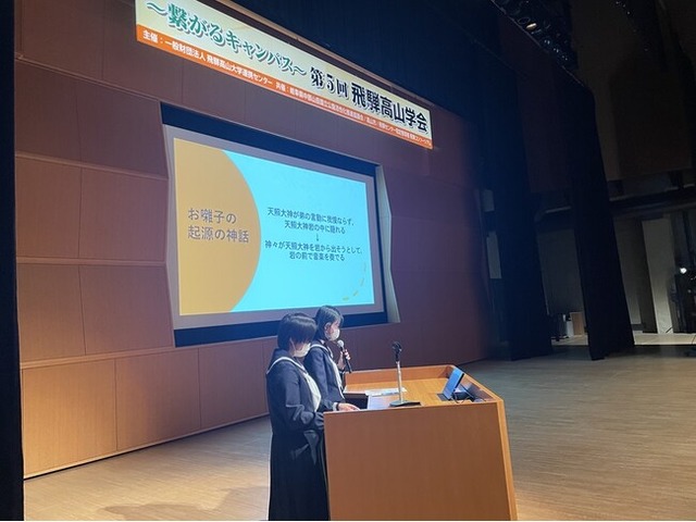 岐阜協立大学、松本大学、愛知大学、名古屋外国語大学などの教授や学生、斐太高校や飛騨高山高校の生徒が、2日間計20グループで発表します。入場料は無料で事前申し込み不要、どなたでも聴講できます。