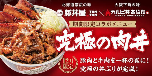 ワンズトライン株式会社(本社:大阪市北区芝田2丁目3番16号、代表取締役:山内仁)が運営する「元祖豚丼屋TONTON」では、12月1日(日)より12月限定提供となる『究極の肉丼』の販売を開始いたします。